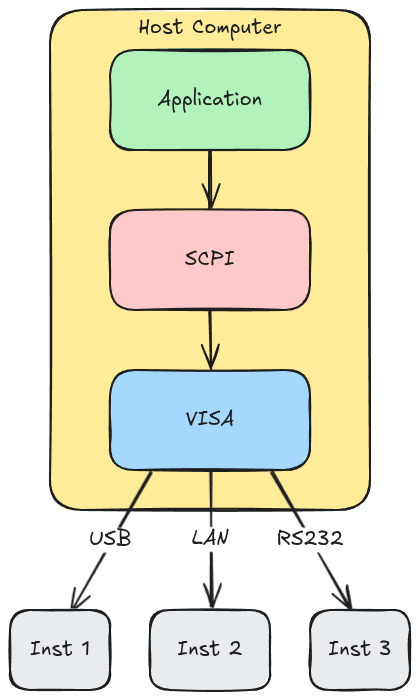 VISA is a standard API (Application Programming Interface) for communicating with instruments regardless of the physical interface (e.g., USB, GPIB, RS-232, Ethernet). It provides a unified way to open, configure, and manage communication sessions with instruments. More detailed information about the VISA specification can be found here