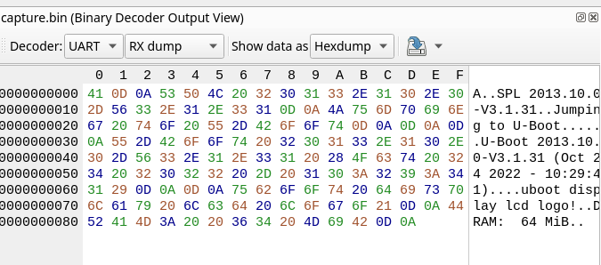 But now that we have this data, how do we import it into other tools for further analysis? While the screenshot is helpful, even to the trained eye, we can tell it is UART, but it doesn't give us much for low-level analysis. In the final section of this post, we'll review how to import this data into pulseview.